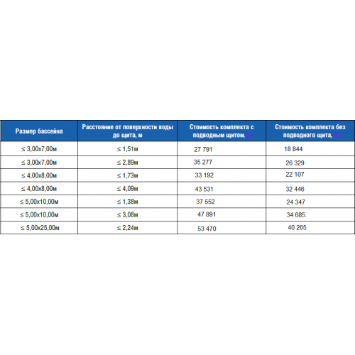 зависимости от размеров чаши бассейна, консультируйтесь в отделе продаж).