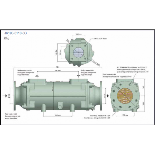 В комплект поставки теплообменников мощностью от 40 до 100 кВт входят