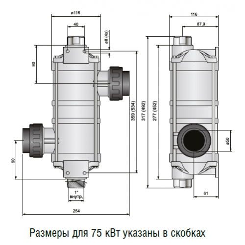 Максимальное рабочее давление: первичный контур - 5 бар, вторичный - 4 бар.