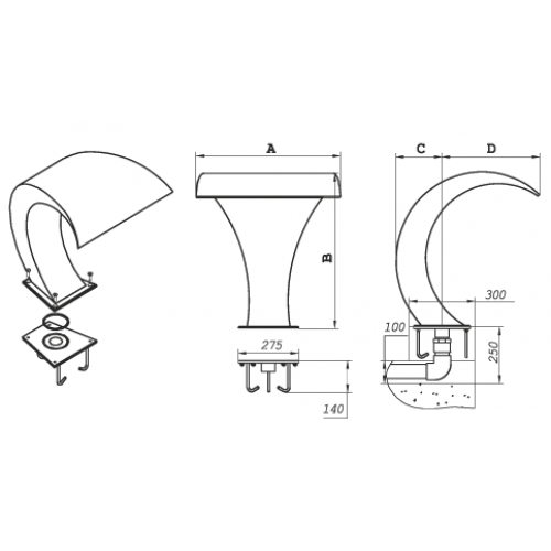 Изготовлен из полированной нержавеющей стали AISI-304. Укомплектован закладной.