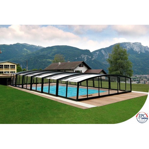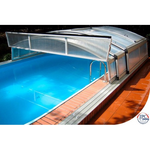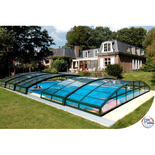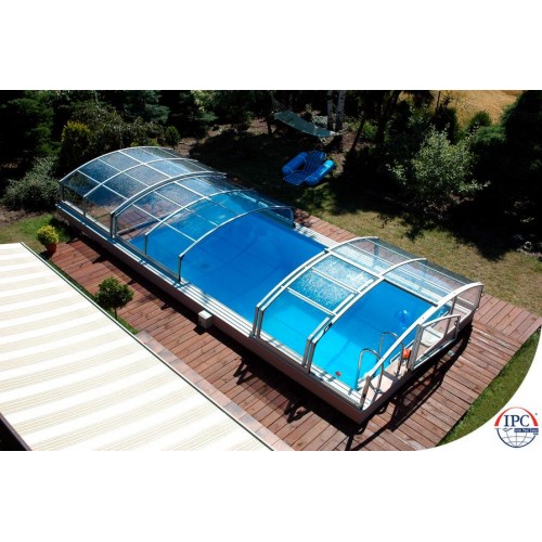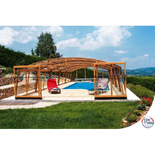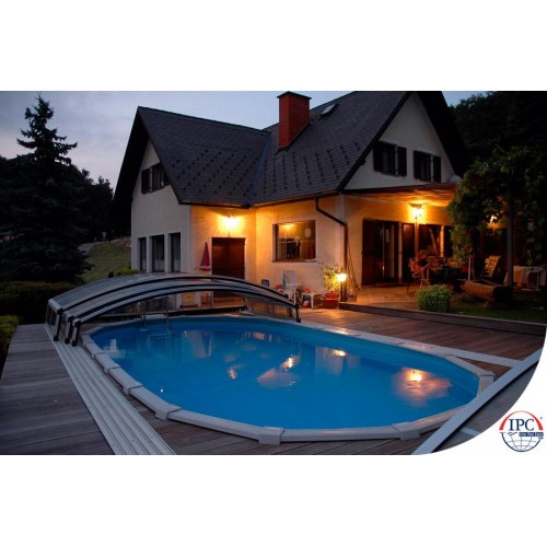 Такой тип павильона также будет хорошо смотрется в вашем саду. Можете купаться в бассейне даже если павильон закрыт. Вид павильона немного отличается от типа
