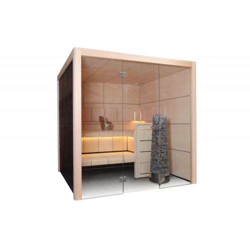 В модели готовой сауны Harvia Claro S2121LS от ведущего мирового производителя банных приборов и аксессуаров воплотились лучшие наработки компании в области дизайна и проектирования саун. Мягкие скругленные линии, эффектный контраст кремового и черного цветов, стеклянная фронтальная часть, дарящая ощущение пространства - это лишь одни из немногих ключевых характеристик представленной сауны. За создание горячей расслабляющей атмосферы отвечает электрокаменка Harvia Kivi, мягко и равномерно нагревающая воздух от пола до потолка.