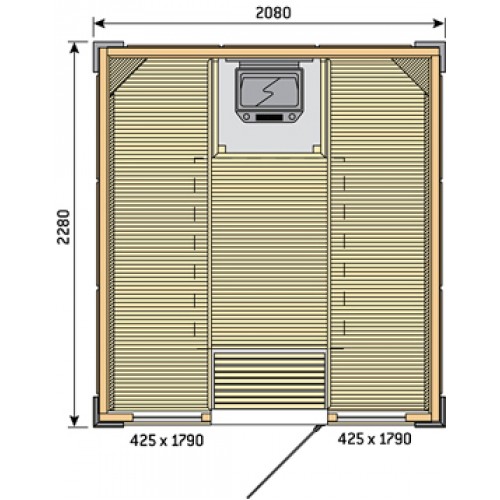 Надежность и долговечность конструкции обеспечивается стальным каркасом и обшивкой из деревянных панелей премиум класса, отличающихся прекрасной термо- и влагостойкостью. На выбор пользователю предлагается отделка из ольхи, осины либо термоосины. Внутренний интерьер, представленный фирменным дизайном Harvia Futura, отличается лаконичностью и изысканностью. Полностью деревянный, он сочетает в себе элементы классики и современности, создавая эффектный внешний вид. Два полока со спинками эргономично соседствуют с зоной для установки каменки Topclass Combi KV90SE, а мягкое освещение обеспечивается светильником с деревянным абажуром. Управление работой каменки, а также системами освещения и вентиляции обеспечивается при помощи удобного цифрового пульта управления серии Griffin Combi, устанавливающегося в любом удобном сухом месте за пределами сауны.
