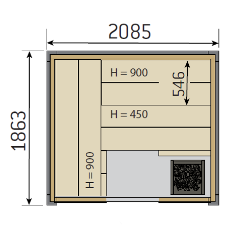Конструкция Harvia Solid Indoor S2119LD обладает размерами 208,5х186,3х210 см и отличается продуманной внутренней эргономикой. На деревянном помосте установленны выполненные из высококачественной термо- и влагостойкой древесины скамьи для комфортного размещения. В центре у дальней стены предусмотрено место для установки электрокаменки, стенки которой надежно скрыты помостом, что обеспечивает дополнительную безопасность при принятии сауны и исключает вероятность получения ожога в случае неосторожного прикосновения к раскаленной поверхности. Нагрев воздуха в сауне обеспечивается производительной электрокаменкой Harvia Virta, входящей в комплект поставки, позволяющей создать мягкую горячую атмосферу для полноценной релаксации.