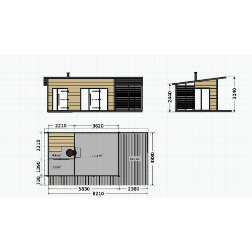 | Размеры (ШхГхВ) | 8210x4330x3040 мм |